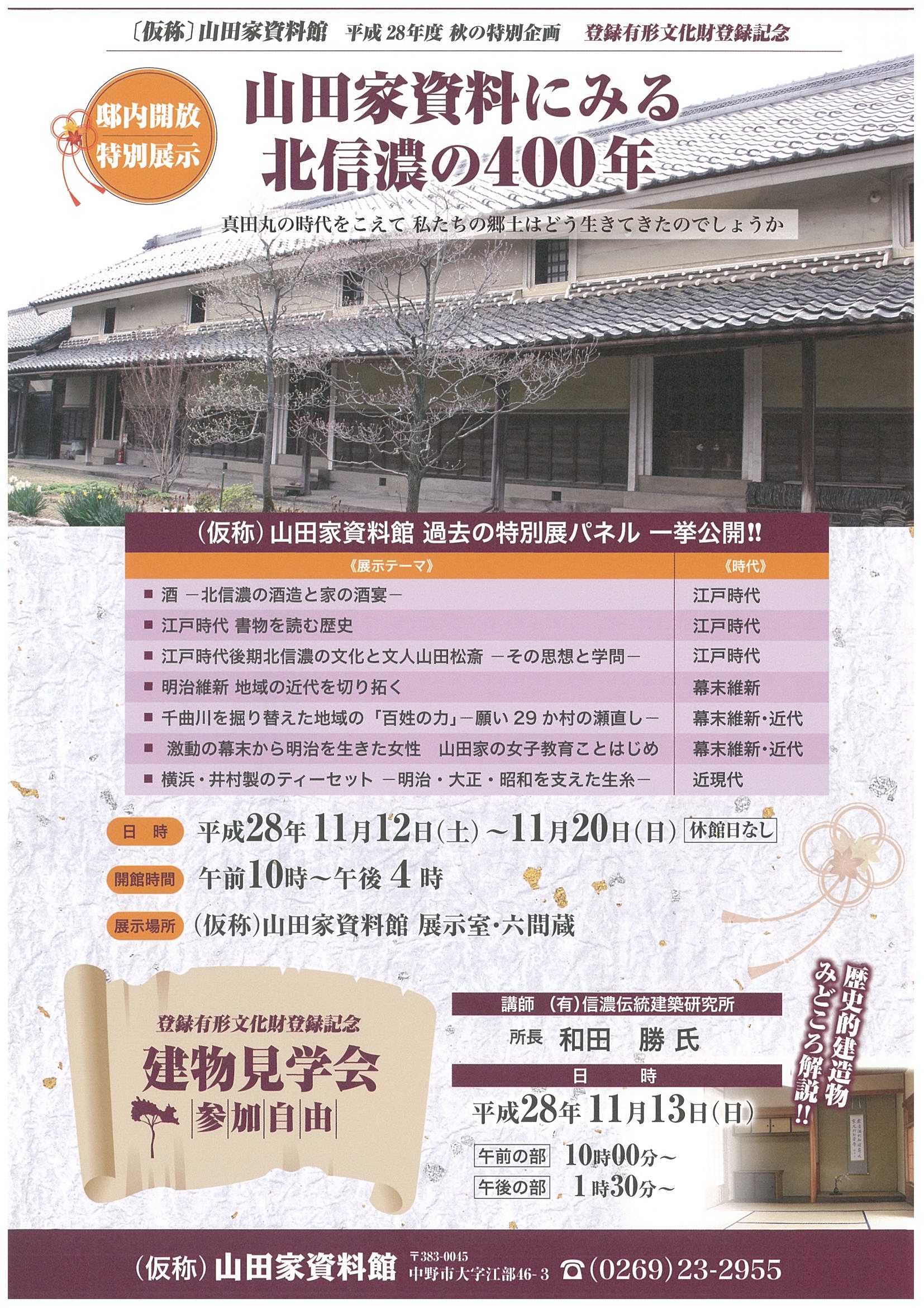 (仮称)山田家資料館で秋の特別企画が開催されます