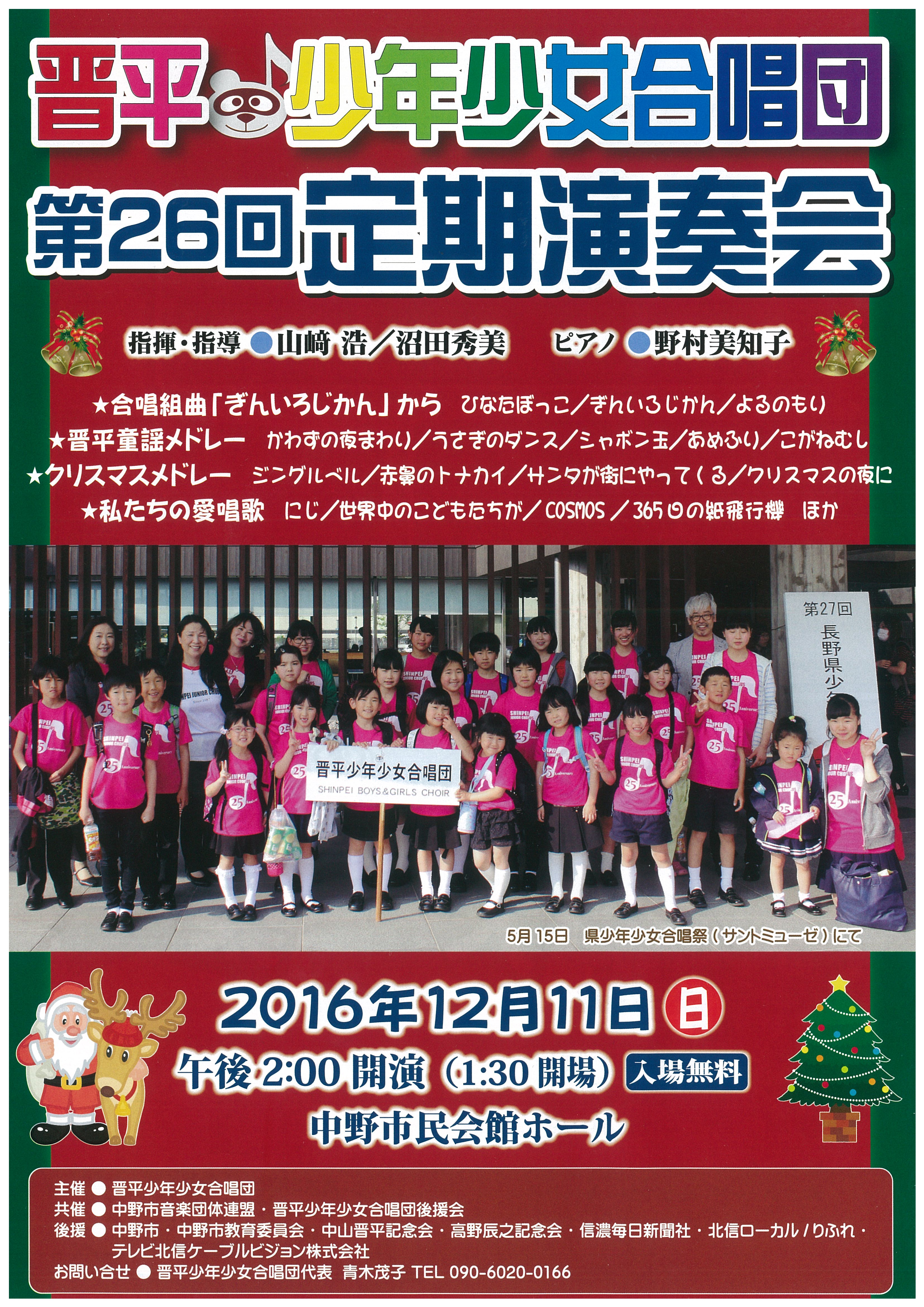 晋平少年少女合唱団第26回定期演奏会 2022 7/28 イベント情報 【記事出稿:中野市庶務課秘書広報係】 イベント情報 よかったらシェアしてね! URLをコピーしました! URLをコピーしました! おはなし♡びっくりばこ「おはなしかい」 新春走り初め大会(12/16募集締切) 関連記事 新春モデルハウス見学会 2026年1月8日 2025年 春わくわくぽんぽこセール 2025年3月7日 ぽんぽこカード12周年記念 ガラポン抽選会・おまとめ会 2024年10月1日 2024年 夏どきどきぽんぽこセール 2024年7月25日 住まいの完成見学会開催! 2024年5月25日 北信濃ふるさとの森文化公園スプリングフェア 2024年5月13日 歩いて健康フェスタ 2024年5月13日 書家 久保皐泉 初個展 「令和」にふり返る“書のある暮らし” 2024年3月13日